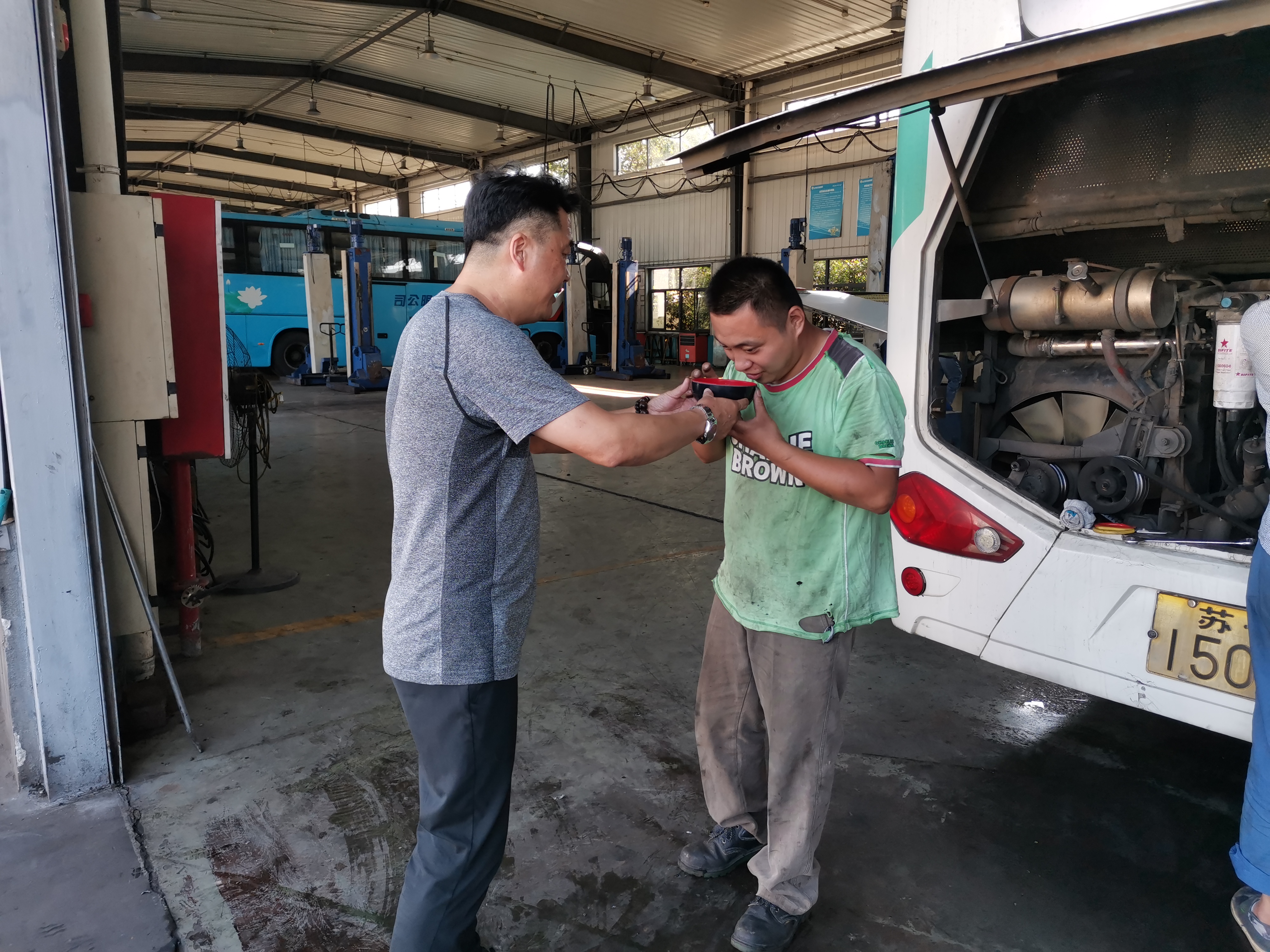 修理廠:針對高溫天氣,修理廠多種防暑措施并進,以發(fā)放藿香正氣水、龍虎人丹、毛巾、肥皂等防暑降溫用品以及全天不限時供應礦泉水,堅持每日發(fā)放冰鎮(zhèn)綠豆湯等方式,避免職工中暑現象發(fā)生,同時還要求班組時刻關注組員身體狀況,著重關注“三高”人群每日服藥情況,保持休息室空調長效制冷,確保職工及時有效防暑避暑,營造高溫下安全生產氛圍。