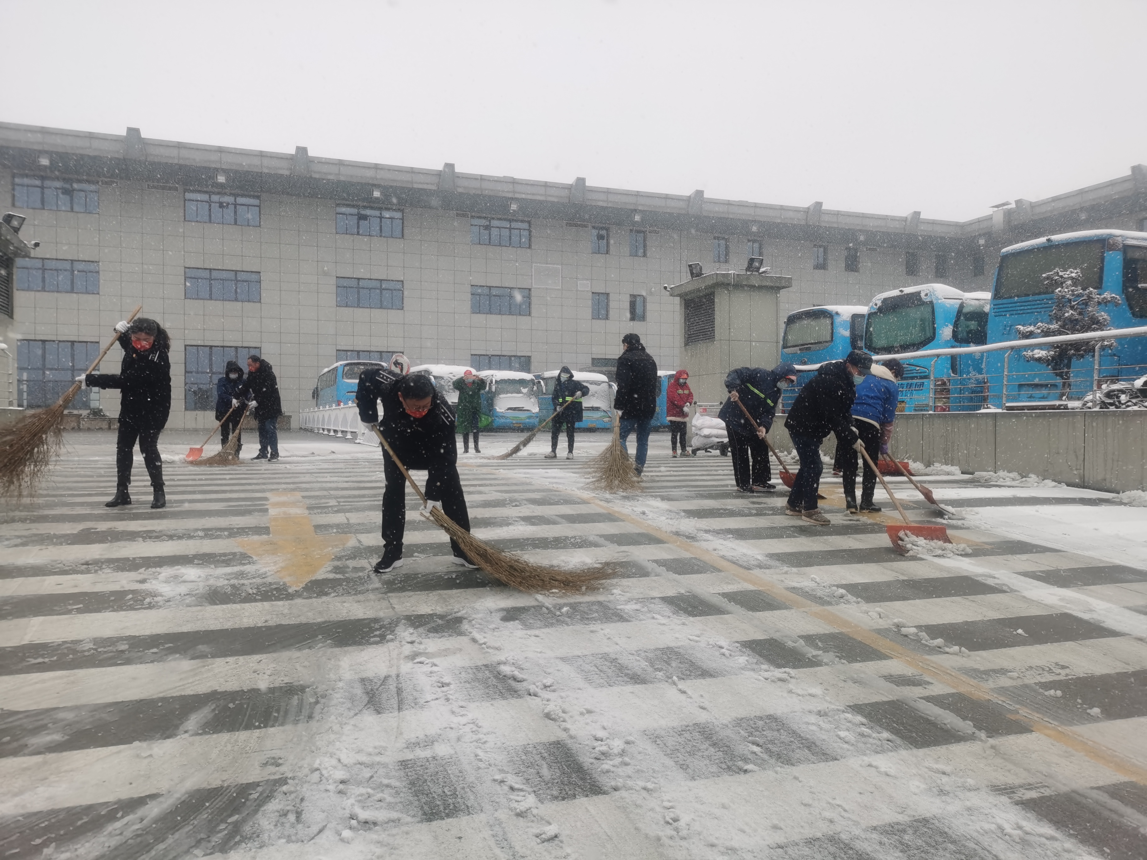 為切實做好安全保障工作,集團(tuán)各所屬單位立即啟動冰雪惡劣天氣應(yīng)急預(yù)案,各崗位干部職工按照分工齊上陣,扛著鐵鍬、拿著大掃把、抬著麻袋融雪劑迅速到達(dá)現(xiàn)場,開始熱火朝天的“掃雪戰(zhàn)斗”。